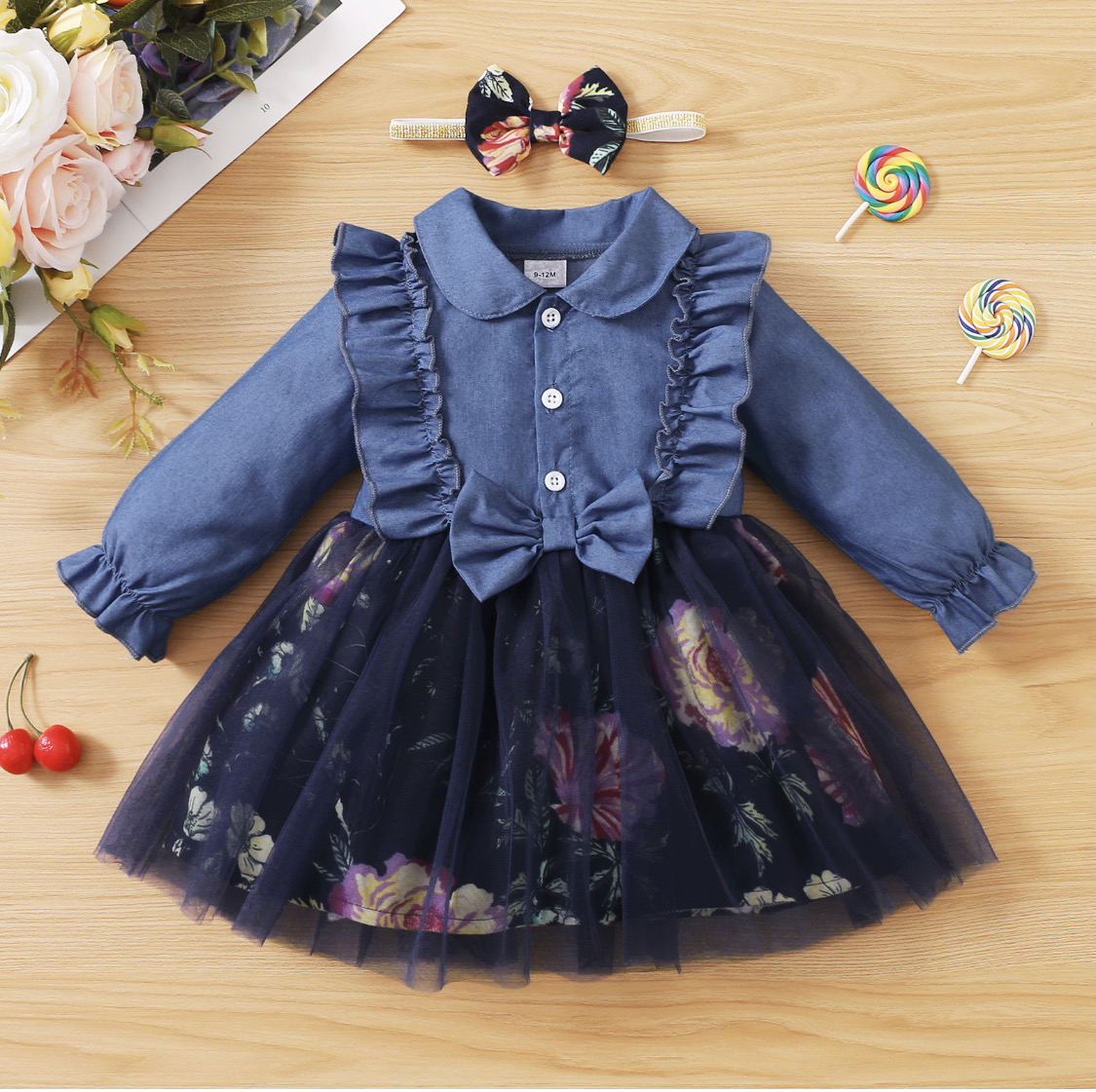 AB131 - فستان الطفلة المكشكش مع ربطة الرأس 0-3 شهور 1 * 78.000 BD |