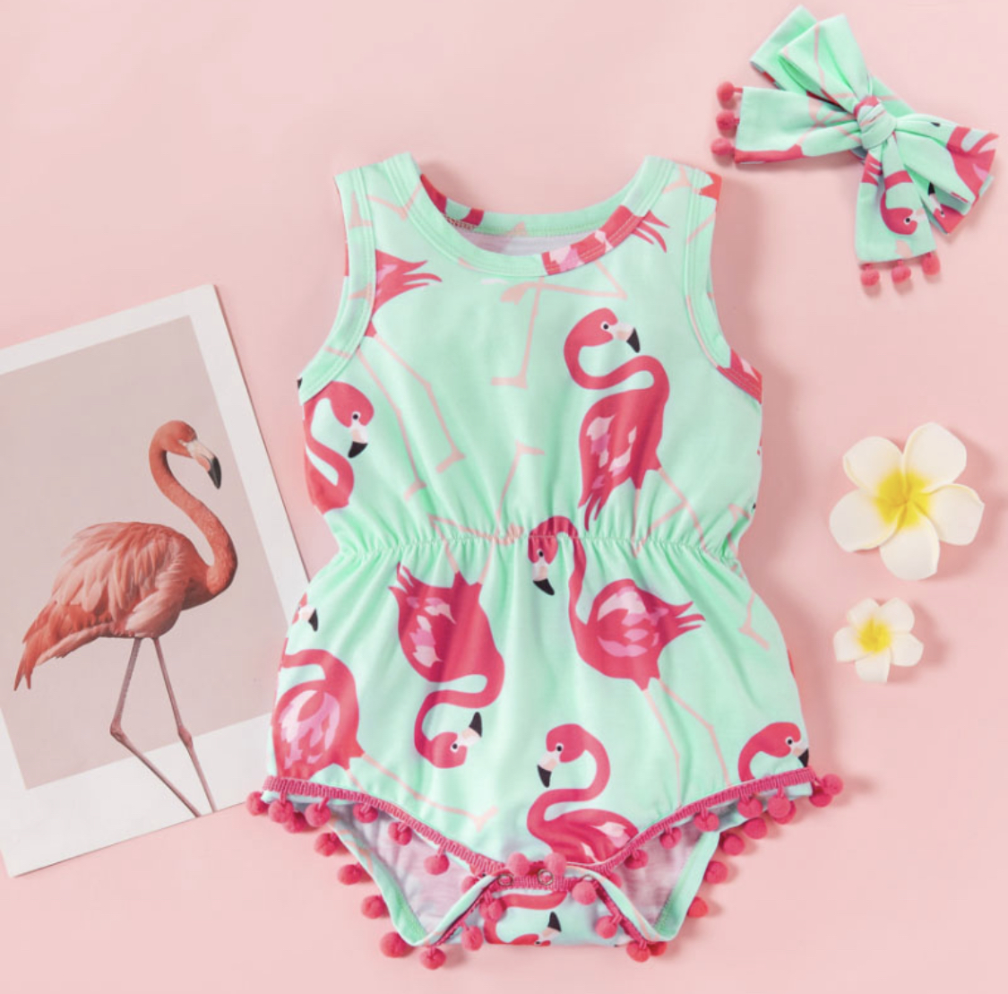 AB117 - جمبسوت صيفي بالفالمنجو بلا أكمام مع ربطة رأس 0-3 شهور 1 * 55.000 BD |